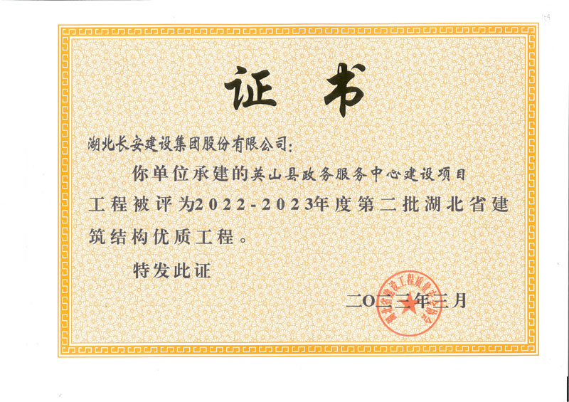 英山縣政務(wù)服務(wù)中心建設(shè)項(xiàng)目等7個(gè)工程獲評(píng)2022-2023年度第二批湖北省建筑結(jié)構(gòu)優(yōu)質(zhì)工程