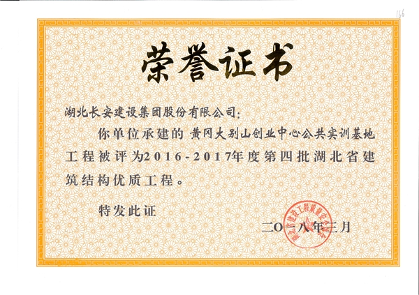黃岡大別山創(chuàng)業(yè)中心公共實訓(xùn)基地”2016-2017年度第四批湖北省建筑結(jié)構(gòu)優(yōu)質(zhì)工程