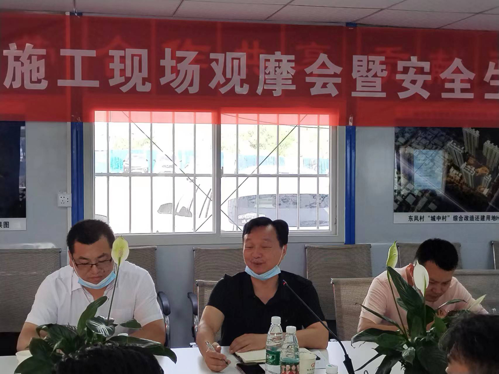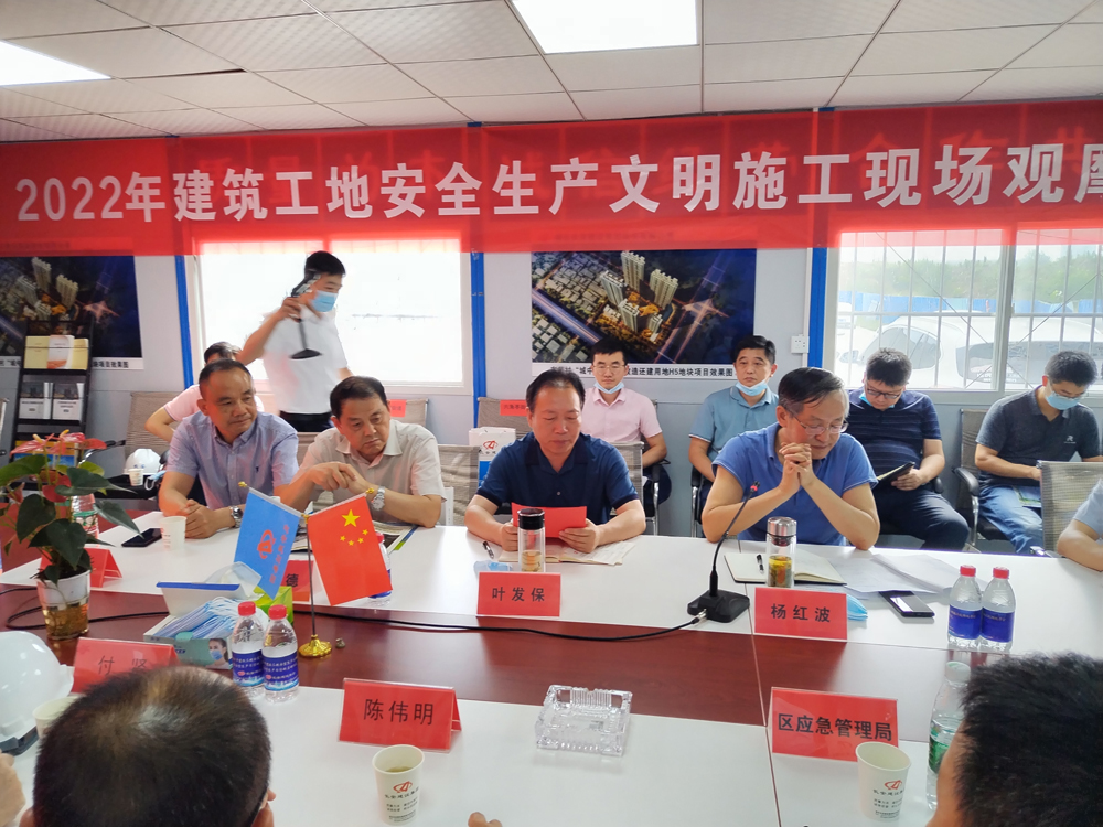 10日下午會(huì)議上,硚口區(qū)建設(shè)局黨委書記、局長潘濤對下一步的建設(shè)安全生產(chǎn)工作作了部署和要求,他說,安全工作只有起點(diǎn)沒有終點(diǎn),一要將安全放在生產(chǎn)的首位,將“安全十五條”抓細(xì)抓實(shí);二要建立長效機(jī)制,多措并舉,筑牢安全底線;三要加強(qiáng)安全宣傳、培訓(xùn),提升安全意識和突發(fā)事故的應(yīng)急應(yīng)變處置能力;四要以“婆婆嘴、跑斷腿”的精神多宣講、勤檢查,及時(shí)發(fā)現(xiàn)隱患,及時(shí)消除隱患;五要高度重視疫情防控、惡劣天氣、工人健康、汛期防護(hù)以及大型機(jī)械設(shè)備、工地用電的管理,確保安全無事故。集團(tuán)總經(jīng)理葉發(fā)保作了先進(jìn)經(jīng)驗(yàn)交流發(fā)言,他說,我們公司的使命是“質(zhì)量為本,誠信經(jīng)營,合作共享,貢獻(xiàn)社會(huì)”,“建百年長安”是公司的偉大愿景,我們始終將安全與質(zhì)量放在工作的首位。一是施工現(xiàn)場按照集團(tuán)公司標(biāo)準(zhǔn)化設(shè)計(jì)和布置,以科技創(chuàng)新構(gòu)建智慧工地,以智能化筑牢織密安全防護(hù)網(wǎng);二是以人為本,責(zé)任到位,夯實(shí)安全責(zé)任體系,系緊安全保護(hù)繩;三是強(qiáng)化安全,抓緊做實(shí)安全工作,確保工人安全和工程建造質(zhì)量,做安全生產(chǎn)的宣傳員和堅(jiān)定執(zhí)行者;四是以綠色加法營造健康環(huán)保工地,保障安全質(zhì)量、生產(chǎn)效益雙豐收。 接著,硚口區(qū)城管局、房管局、易家街等多家單位負(fù)責(zé)人就所轄區(qū)域的安全檢查以及整治、整改情況,作了專題匯報(bào)。