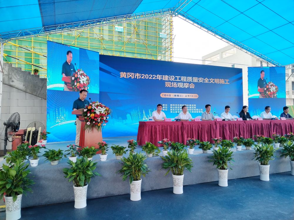 酷暑盛夏,火紅歲月。7月6日,黃岡市2022年建設工程質量安全文明施工現(xiàn)場觀摩活動在湖北長安建設集團承建的英山縣政務服務中心建設項目現(xiàn)場召開。黃岡市住建局黨組成員、副局長徐向華,英山縣縣委副書記、政法委書記張春梅,英山縣住建局黨組書記、局長段衛(wèi)國,英山縣政務服務和大數(shù)據(jù)管理局黨組書記、局長段斌,英山縣應急管理局黨委書記、局長楊晨曦,湖北省人大代表、黃岡市建筑業(yè)協(xié)會會長、英山縣工商聯(lián)主席、湖北長安建設集團董事長段衛(wèi)昌出席此次活動。英山縣人民政府黨組成員、副縣長陳瓊主持。