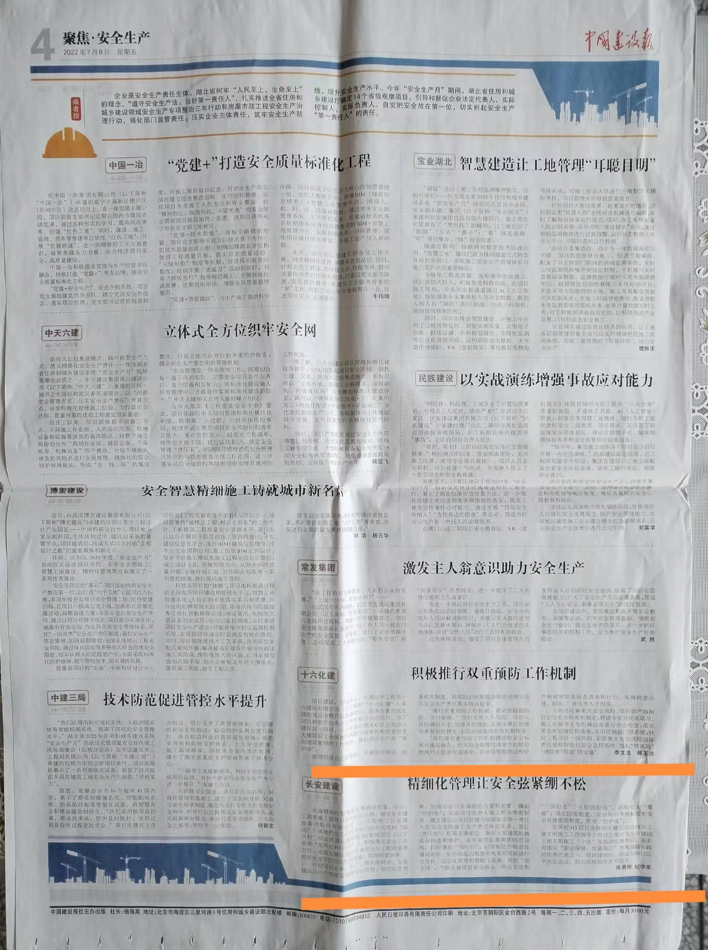 針對項目點多、面廣、線長的特點,長安建設(shè)從六個維度實施精細化管理:制定應(yīng)急預(yù)案,加強安全應(yīng)急演練的力度和密度,撐起“防護傘”;實施項目負責人施工現(xiàn)場帶班制度,建立健全以項目經(jīng)理為現(xiàn)場安全第一責任人的安全文明施工生產(chǎn)責任保證體系,簽訂“責任狀”;盯緊關(guān)鍵部位,做好大型建筑機械設(shè)備檢查和維護,備齊高空墜落事故防范設(shè)施,打好事故“預(yù)防針”;以智能紅外線語音播報系統(tǒng)、紅外線臨邊報警系統(tǒng)等對現(xiàn)場進行信息化、動態(tài)化管理和智能化監(jiān)測,織密“安全網(wǎng)”;嚴格實施班前安全晨會、班后交底和“三級檢查”“三階段驗收”,消除安全“毒瘤”;強化防疫制度、安全知識考核制度和安全管理獎懲制度,筑牢“防護堤”。