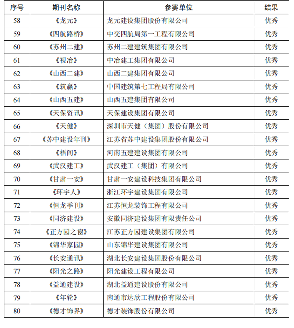 8月4日,中國(guó)施工企業(yè)管理協(xié)會(huì)發(fā)布《工程建設(shè)企業(yè)文化建設(shè)最佳案例和優(yōu)秀案例的通知》《2022年工程建設(shè)企業(yè)文化作品競(jìng)賽結(jié)果的通知》,評(píng)選出工程建設(shè)企業(yè)文化建設(shè)最佳案例49個(gè)、優(yōu)秀案例67個(gè)和建設(shè)企業(yè)期刊80(家)種(其中精品42種,優(yōu)秀38種)。湖北長(zhǎng)安建設(shè)集團(tuán)股份有限公司(簡(jiǎn)稱長(zhǎng)安建設(shè)集團(tuán))《紅色文化與企業(yè)文化協(xié)同發(fā)力,黨建引領(lǐng)企業(yè)高質(zhì)量發(fā)展》入選企業(yè)文化優(yōu)秀案例、《長(zhǎng)安通訊》被評(píng)為優(yōu)秀期刊。