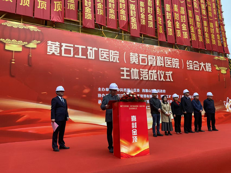 11月20日,黃石工礦醫(yī)院(黃石骨科醫(yī)院)綜合大樓主體落成儀式舉行,集團(tuán)公司總經(jīng)理葉發(fā)保到場(chǎng)祝賀并作重要講話。